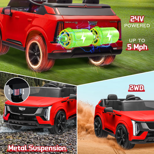 Cadillac Escalade IQ 24V Kids Ride on Car, 2 Seater Battery Powered Electric Vehicle W/ Remote Control(Red)
