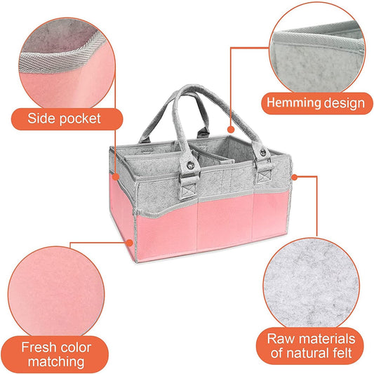 Baby Diaper Caddy Organizer with Detachable Handle (16X10X7Inch), Baby Gift Basket for Car/Bedroom/Travel, Nursery Storage Bin for Storing Diapers and Other Baby Products, (Pink)